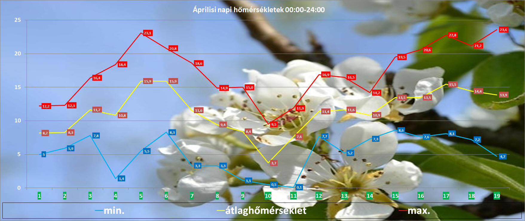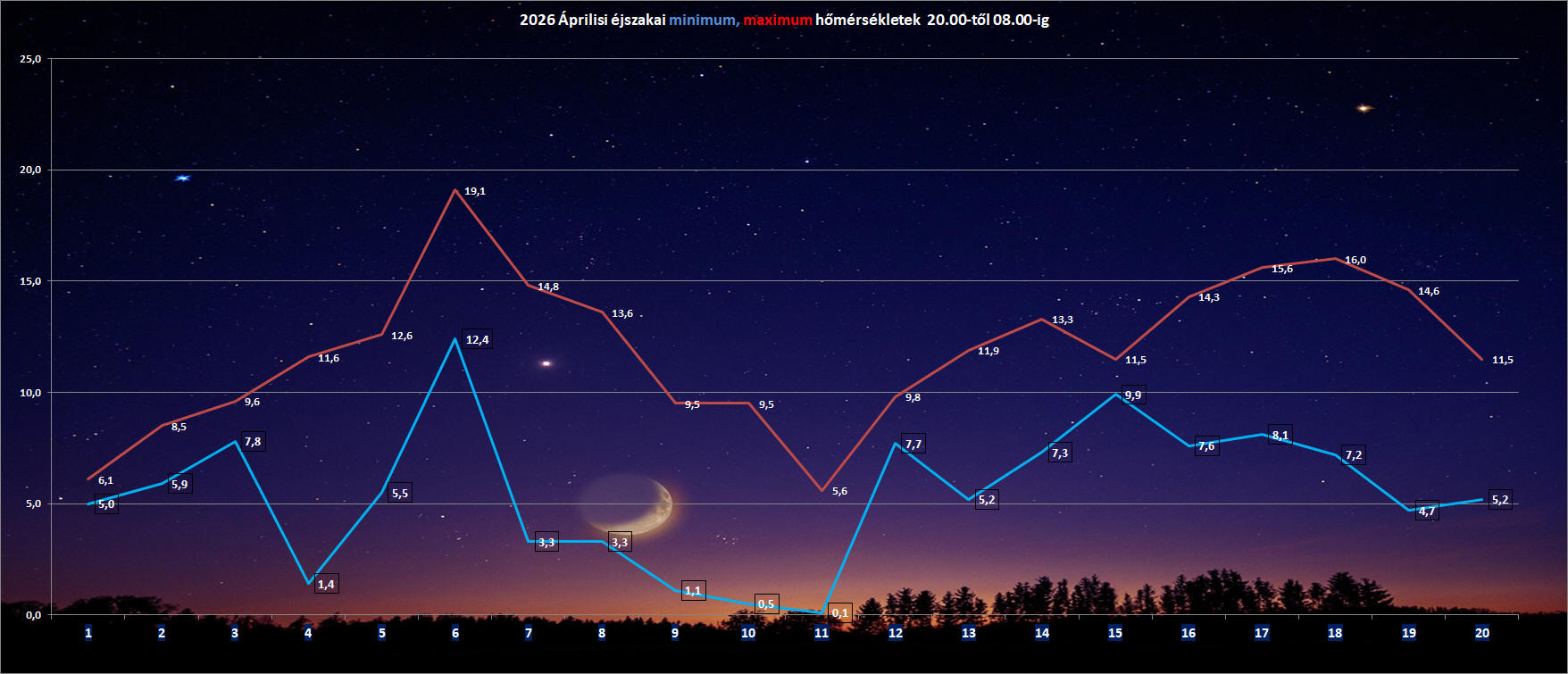 | Éjszakai min., max. hőmérsékletek | Napi hőmérsékletek | Radiációs min. hőmérsékletek | Csapadék mm/ 6:45-6:45 | |||||||||||||||||||||||||||||||||||||||||||||||||||||||||||||||