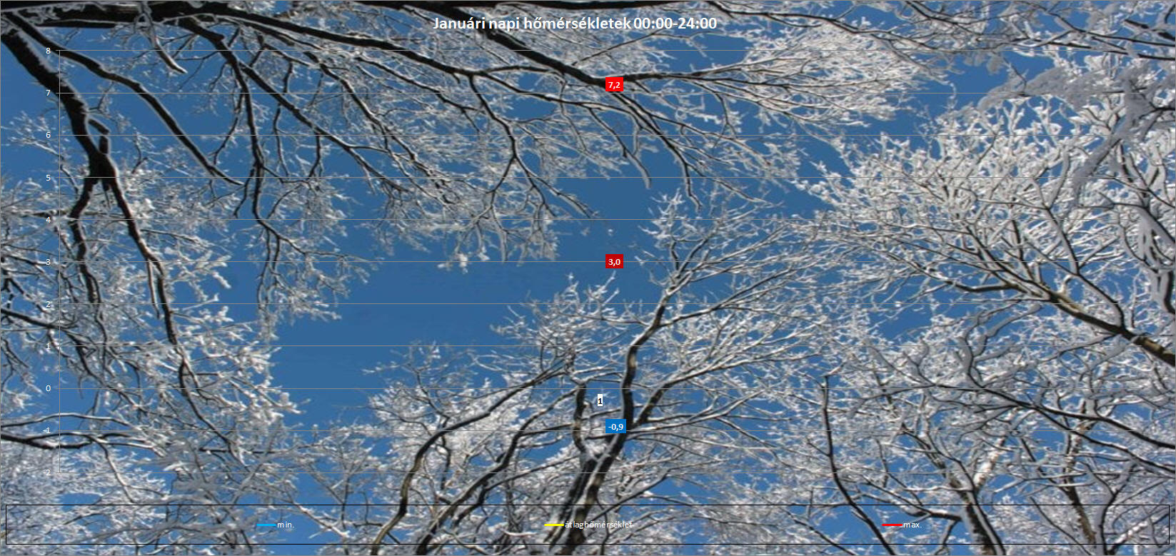Napi min.:-0,9°C, max.:7,2°C, Csapadék:0,0 mm (06:45-6:45) hótakaró: hófolt