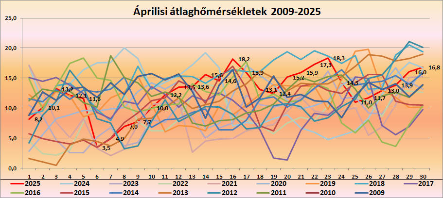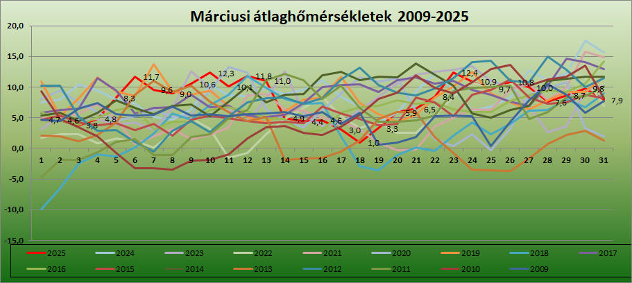azaz 1,25 °C-al alacsonyabb érték volt az előző évhez képest.