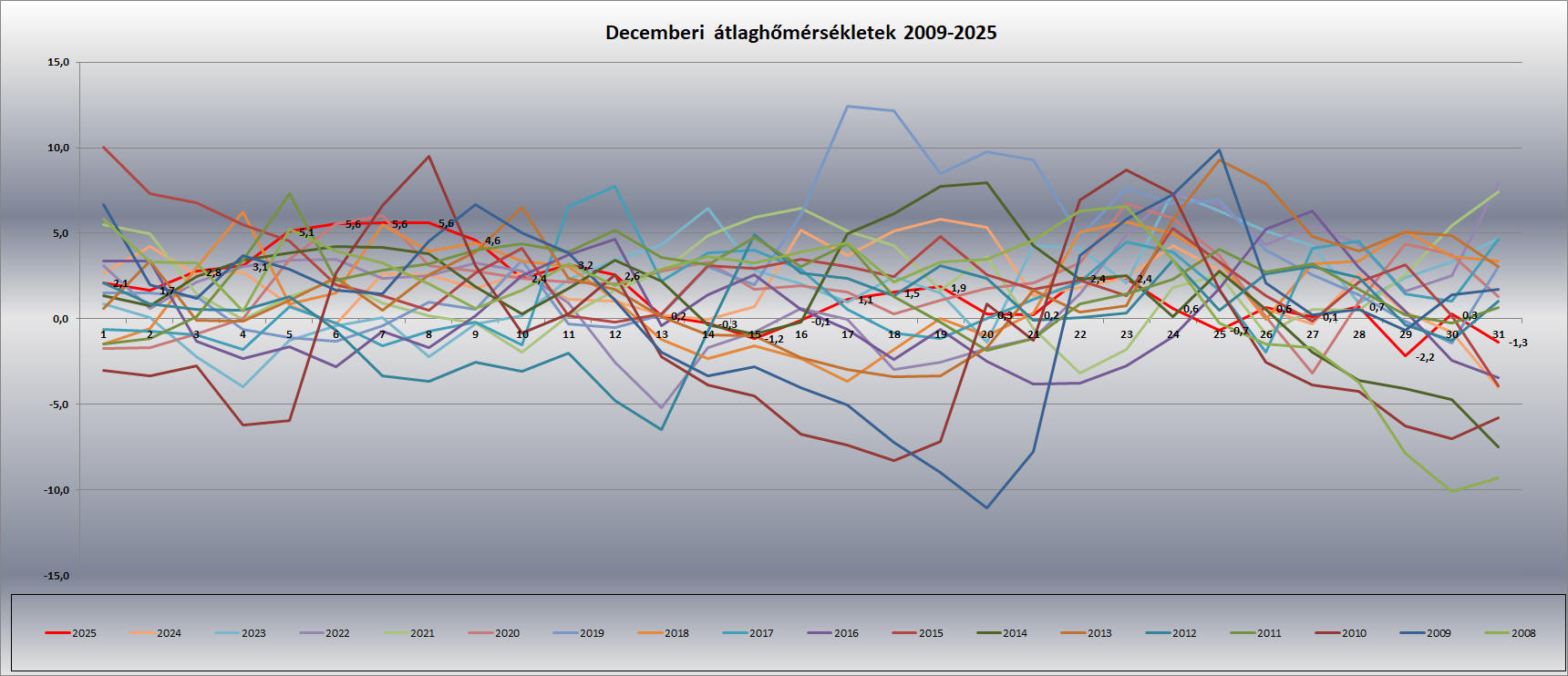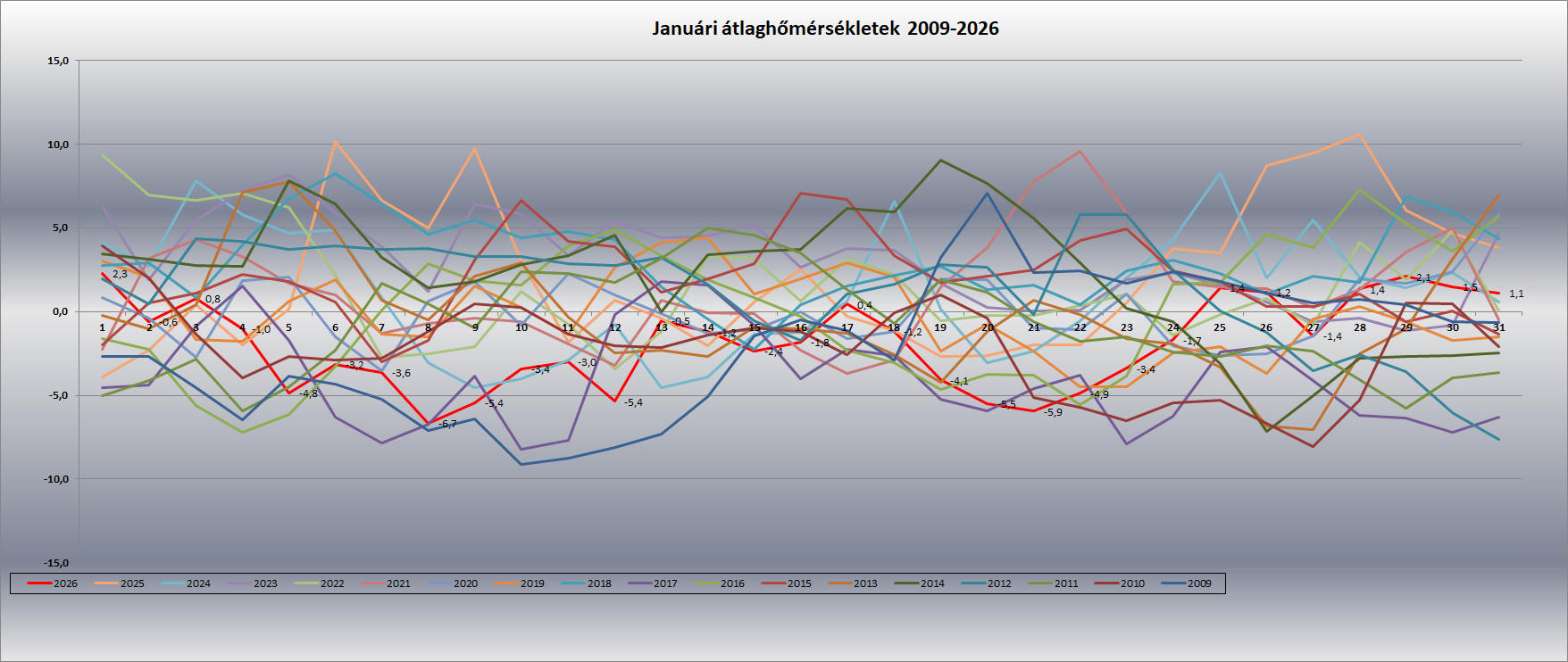 Téli időszak középhőmérséklete 1,04 °C, ami tavalyhoz képest -0,79°C-al hűvösebb időt jelent. Ezen időszak
